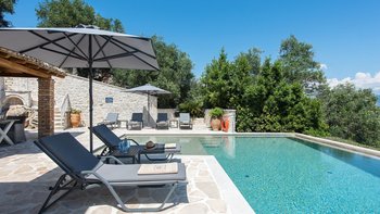 Im Inneren wurde die Villa sorgfältig renoviert und in raffinierten Cremes, Grau- und Blautönen neu eingerichtet. Dessen kühle Farbpalette ergänzt das moderne Styling und den luftigen offenen Wohnbereich, der eine neue, geräumige, moderne Küche, Ess- und Sitzbereiche umfasst. Ebenfalls im Erdgeschoss befinden sich ein Doppelschlafzimmer mit neuem, ebenerdigem Duschbad und ein Zweibettschlafzimmer mit eigenem, ebenerdigem Duschbad (ebenfalls mit einer Tür, die zum Poolbereich führt). Im Obergeschoss öffnet sich das Hauptschlafzimmer zu einer großen Terrasse mit Sitzbereich und Blick auf das Meer und St. Stephano, und das neue Bad umfasst eine ebenerdige Dusche und ein eigenes und separates Bad. Wassersport, Nachtleben und Restaurants sind in den nahe gelegenen Dörfern leicht zu erreichen.