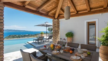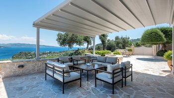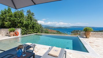 Die wunderschöne Villa Melina besticht durch ihr luxuriöses und zeitgemäßes Interieur und das elegante Äußere. Perfekt auf dem exklusiven Hügel oberhalb von St. Stephano gelegen und nur 10 Minuten zu Fuß über einen schattigen, unebenen Weg zu den Bars und Restaurants entfernt, sonnt sich die Villa Melina in einer wunderschönen natürlichen Umgebung mit gepflasterten und in die Felsen gestuften Terrassen, umgeben von Olivenbäumen und blühenden Sträuchern. Ein bequemer, schattiger Sitzbereich mit Sitzgelegenheiten und einer ausziehbaren Markise überbrückt die Lücke zwischen dem Haus und seinem Infinity-Pool. Dessen erster der beiden stilvoll eingerichteten Essbereiche wird von einem in den Felsen eingebauten Grill serviert. Der Infinity-Pool bietet einen spektakulären Blick auf die Bucht von St. Stephano und ein schattiger Essbereich wurde hinter dem Pool hinzugefügt, um die Aussicht beim Essen im Freien zu genießen.