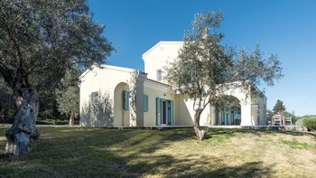 Mit herrlichem Blick auf das Meer und viel Platz drinnen und draußen, ist die Villa Nisi eine atemberaubende Villa in der Nähe des pulsierenden Kassiopi.