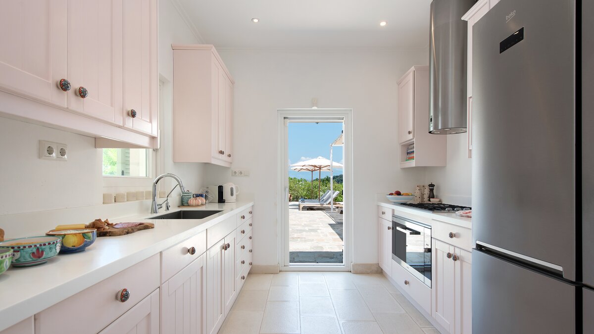 Die Villa Pashalia ist eine elegante und geräumige Villa über dem Meer zwischen Avlaki und Coyevinas Strand in perfekter Lage mit Blick auf das Meer. Denen Villa ist wunderschön eingerichtet und verfügt über einen Privater Pool, der sich ideal für Familien und Gruppen eignet. Im Inneren befinden sich ein helles und luftiges Ess- und Wohnzimmer mit offenem Schnitt sowie eine voll ausgestattete Küche. Im Erdgeschoss befinden sich auch drei geräumige Schlafzimmer, jedes mit eigenem Bad und Zugang zur Terrasse. Im Obergeschoss befindet sich ein weiteres privat gelegenes Schlafzimmer mit einem Super-Kingsize-Bett und einem Duschbad en suite. Im unteren Erdgeschoss befinden sich ein Fitnessraum, ein Medienraum und ein zusätzliches Schlafzimmer für die Kinder.