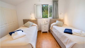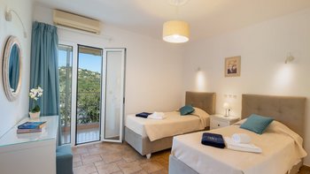 Mit Privater Pool und ruhigem Meerblick ist die Villa Sotiris eine großartige Unterkunft für Freunde oder Familien mit bis zu sechs Gästen. Es gibt drei charmante Schlafzimmer, die alle en suite sind; Das Zweibett-Zimmer im Erdgeschoss öffnet sich zu einem hinteren Balkon, während sich die Schlafzimmer im Obergeschoss einen gemeinsamen Balkon teilen. Der Wohnbereich ist offener Grundriss mit einer voll ausgestatteten Küche, einem Essbereich im Innenbereich und einem Wohnbereich mit bequemen Sitzgelegenheiten. Doppeltüren öffnen sich zur Terrasse, die für Mahlzeiten im Freien mit Meerblick eingerichtet ist, wo die Gäste den eingebauten Grill der Villa nutzen können. Der PRIVATER POOL nimmt den Ehrenplatz in der Mitte des Gartens ein, mit Liegestühlen am Pool für ultimative Entspannung.