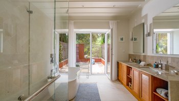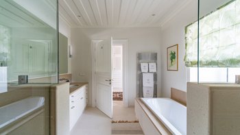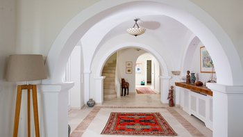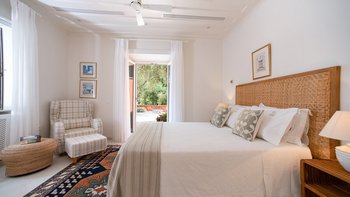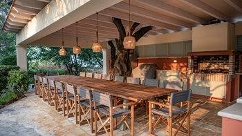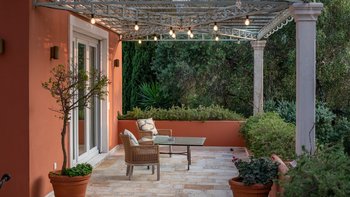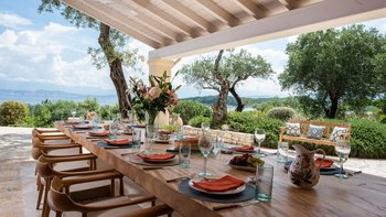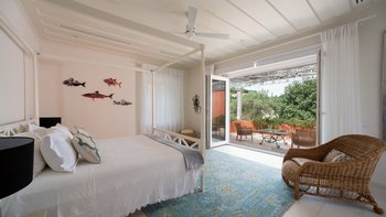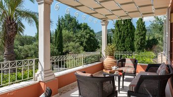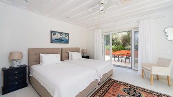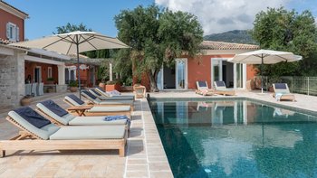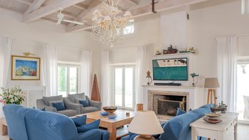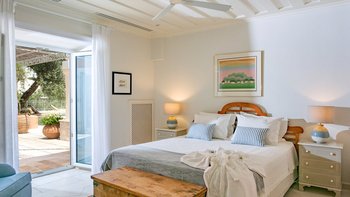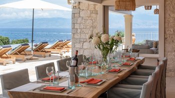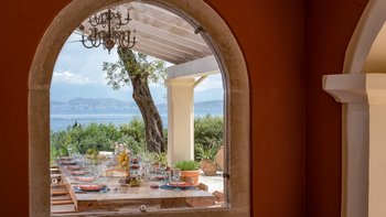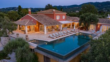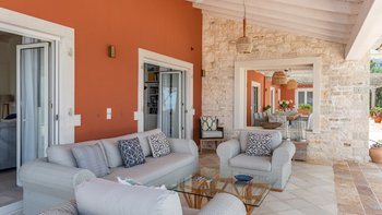 Die Villa Soukia befindet sich am Wasser in Kassiopi und bietet einen weiten Blick auf das Meer und direkten Strandzugang. Ins Innere ist das Anwesen geräumig und geschmackvoll eingerichtet. Von der Eingangshalle aus gelangen die Gäste in das schöne, große Wohnzimmer mit mehreren Fenstertüren, die den Raum mit Tageslicht durchfluten und sich auf die Terrasse öffnen. Deren moderne Küche ist komplett ausgestattet, während die Außenküche mit einem Holzofen ausgestattet ist. Im Erdgeschoss befinden sich drei Doppelschlafzimmer mit eigenem Bad, eines mit eigener Außendusche und das andere mit eigener Terrasse. Deren Hauptschlafzimmer befindet sich im ersten Stock und verfügt über ein eigenes Bad, ein Ankleidezimmer und eine eigene Terrasse, auf der Sie die Aussicht genießen können. In einem separaten Nebengebäude befinden sich weitere vier Doppelschlafzimmer mit Bad, ideal für Mehrgenerationenurlaube.