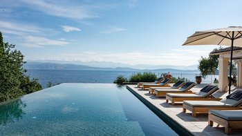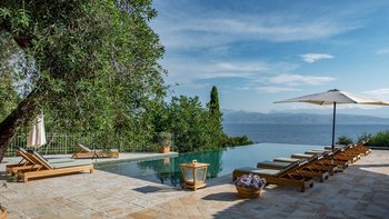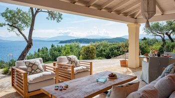 Die große Terrasse mit Meerblick ist stilvoll für das Leben im Freien eingerichtet und bietet eine Reihe von Sitz- und Essbereichen zur Auswahl. Der Infinity-Pool befindet sich am Rande der Terrasse mit Liegestühlen für ultimative Entspannung. Ein Concierge steht Ihnen in der Unterkunft zur Verfügung und Gäste, die im Juli oder August Urlaub machen, können auch einen inklusive Kochservice in Anspruch nehmen, während Cafés, Bars und Restaurants nur 1 km entfernt in Kassiopi liegen.