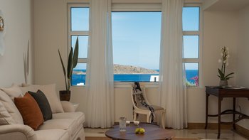 Die individuell gestalteten Suiten sind in einem anspruchsvollen und eleganten Stil eingerichtet und verfügen alle über luxuriöse Marmorbäder mit Jacuzzi-Wanne und offene Terrassen mit idyllischer Aussicht. Die Deluxe Senior Suiten sind klimatisiert und gut ausgestattet und verfügen jeweils über ein Schlafzimmer mit eigenem Bad und Dusche, ein komfortables Wohnzimmer und einen privaten Balkon oder eine Terrasse. Des Frühstücksbuffet wird im Restaurant Argo serviert.