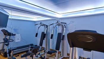 • Elixir Spa Galerie Fitnessraum: mit Laufband, Heimtrainer, Bauchbank für den unteren Rücken, Multi-Maschine, Sauna, Dampfbad, beheizter Außenjacuzzi, Massageraum