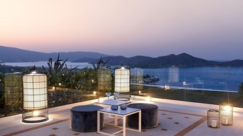 Den Mittelpunkt dieser fabelhaften Villa bildet ein 17-Meter-Infinity-Pool mit zwei Jacuzzi-Düsen und versenkt in einer Sonnenterrasse mit herrlichem Meerblick. Der anspruchsvolle Royal Spa Villa verfügt über einen privaten Fitnessraum und eine Sauna, eine voll ausgestattete Küche, ein elegantes Wohnzimmer mit Türen zur Poolterrasse und einem Essbereich im Freien und vier Schlafzimmer, jedes en suite mit einem Marmorbad mit Jacuzzi-Badewanne. Tauchkurse im Pool der Villa, Kochservice und Massagen in der Villa und Business-Einrichtungen können im Hotel arrangiert werden. In Hanggärten mit Blick auf die Mirabello-Bucht bieten die Elounda Gulf Villas einige der luxuriösesten Unterkünfte der Insel.