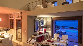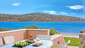 Diese Luxusvilla auf Kreta genießt die Einrichtungen und Dienstleistungen des renommierten Golfresorts von Elounda, aber abgeschieden davon in einer Strandumgebung, und bietet das Gute aus beiden Welten.