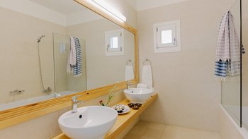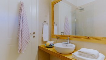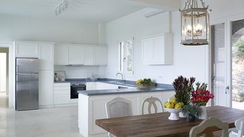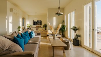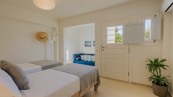 Kyra ist eine geräumige, elegante Villa mit einer ausgezeichneten Auswahl an Wohnbereichen im Freien. Im Innenbereich erwartet Sie ein helles und modernes Wohnzimmer mit einem Schreibtisch und Türen zur Terrasse. Der weiß getünchte Küche/Essbereich ist geräumig und elegant und bietet einen schönen Platz, um mit Freunden oder der Familie zu kochen und zu speisen. Im Erdgeschoss befinden sich auch zwei Doppel- oder Zweibettschlafzimmer, die wunderschön eingerichtet sind und jeweils ein Duschbad haben. Im ersten Stock befindet sich ein schönes Hauptschlafzimmer mit einem bezaubernden Himmelbett, Bad en suite und Zugang zur Terrasse. Im ersten Stock befindet sich auch ein Schlafzimmer mit Doppelbett und Dusche en suite. Im unteren Erdgeschoss befinden sich zwei Doppel- oder Zweibettzimmer mit Dusche en suite, von denen jedes einen bequemen Zugang zum Poolbereich hat. Ein- Waschküchen- und Stauraum vervollständigen diese Ebene.