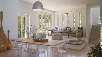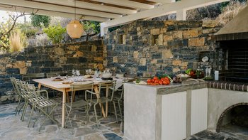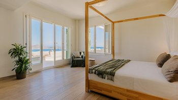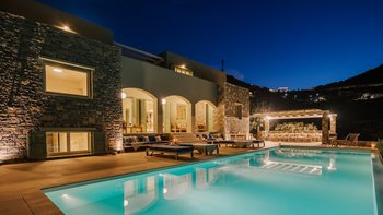 Am Stadtrand von Elounda auf Kreta gelegen, bietet dieses elegante Anwesen einen perfekten griechischen Kurzurlaub für die ganze Familie. Im Erdgeschoss dieser modernen Villa finden die Gäste einen geräumigen Wohn-/Essbereich mit neutraler Einrichtung, einem Kamin und hohen Decken vor. Es gibt sogar einen Arbeitsbereich mit Schreibtisch. Deren Küche ist komplett ausgestattet, mit französischen Türen, die auf eine schattige Lounge-Terrasse mit Zugang zum Poolbereich führen. Deren Erdgeschoss verfügt auch über zwei Schlafzimmer, von denen eines über einen externen Eingang zugänglich ist, und ein Badezimmer en suite und Zugang zur Terrasse. Im ersten Stock befindet sich ein wunderschönes Hauptschlafzimmer mit Himmelbett und eigenem Bad mit Regendusche. Im ersten Stock befindet sich auch ein Doppelschlafzimmer mit Bad en Suite, das über eine Außentreppe erreichbar ist. Von diesem Raum aus haben Sie einen herrlichen Meerblick und Zugang zu zwei hübschen Terrassen.
