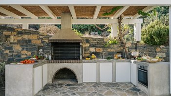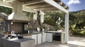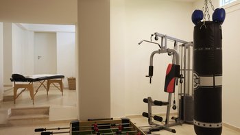 Im Untergeschoss befinden sich vier weitere Doppelschlafzimmer, von denen drei leicht in Zweibettzimmer umgewandelt werden können. Jedes verfügt über ein eigenes Bad mit Dusche. Der Untergeschoss ist ideal für einen Familienaufenthalt und beherbergt auch einen Fitnessraum mit Trainingsgeräten und unterhaltsamen Aktivitäten wie Tischtennis. Dieser Villa bietet auch fantastische Wohnbereiche im Freien. Kochen Sie in der charmanten Außenküche und speisen Sie im Freien unter der schattigen Terrasse mit Blick auf das Meer, bevor Sie ein Bad in dem Infinity-Pool nehmen. Annehmlichkeiten finden Sie in Elounda, nur 3 km entfernt, oder Plakka, 5 km entfernt. Zu den Sehenswürdigkeiten, die Sie nicht verpassen sollten, gehören Spinalonga, reich an historischen Ruinen, und die Sandstrände der Insel Chryssi. Der Flughafen Heraklion ist nur 60 km entfernt.