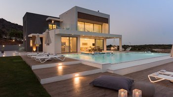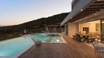 Die Villa Alayla befindet sich in einer atemberaubend ruhigen Lage in Chania und ist eine helle und moderne Unterkunft für Familien. Deren Innenräume sind modern und luftig, mit einem schön eingerichteten Wohn-/Essbereich und einer voll ausgestatteten Küche. Jedes der vier Schlafzimmer ist mit einem Doppelbett und eigenem Bad ausgestattet, während zwei mit einem brillanten begehbaren Kleiderschrank ausgestattet sind. Es gibt auch einen Arbeitsbereich im ersten Stock mit Blick auf die Zimmer darunter. Deren Villa verfügt über geräumige Wohnbereiche im Freien, darunter einen großen Garten, in dem die Kleinen spielen können. Es gibt auch einen schönen Infinity-Pool, einen sonnenverwöhnten Wohnbereich und einen schattigen Esstisch im Freien.