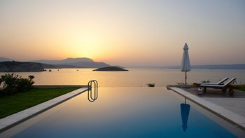 Einen sanften Spaziergang vom Sandstrand und den Tavernen des Dorfes Almyrida entfernt, ist dies eine moderne Luxusvilla an der Nordwestküste Kretas, die ausgezeichnete Standards und einen exquisiten Blick auf das Meer und den Sonnenuntergang bietet.