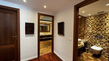 Zwei Schlafzimmer mit eigenem Bad teilen sich die obere Etage und den möblierten Balkon mit Blick auf die Bucht, die Master-Suite mit Jacuzzi-Badewanne. Und im unteren Stockwerk ist das dritte Schlafzimmer flexibel eingerichtet und kann als Zweibett- oder Kingsize-Bett genutzt werden; und das Duschbad im unteren Stockwerk verfügt über eine Dusche mit Dampfbad, eine kleine Sauna, ein Dampfbad und eine Auswahl an Fitnessgeräten. Mit ebenso durchdachter Planung für das Leben im Freien bildet ein Infinity-Pool den Mittelpunkt der schönen Gartenanlagen mit Rasen und ein stilvoller Pavillon ist der perfekte Ort für laue Nächte, wenn die Lichter der Küstendörfer nach Einbruch der Dunkelheit eine magische Aussicht bieten. Ein Kochservice könnte hier ein zusätzliches Maß an Freizeitvergnügen hinzufügen, und Tavernen im hübschen Almyrida sind nur 200 Meter entfernt und der Strand noch näher. Die Managerin gibt sehr gerne ihre persönlichen Empfehlungen, um sicherzustellen, dass Sie das Beste aus Ihrem Urlaub auf Kreta machen.
