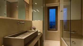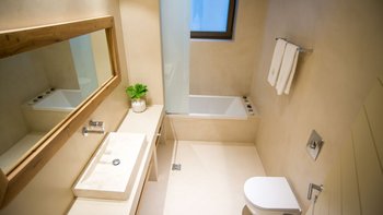 • Master-Doppelzimmer mit Bad en suite (teilweise offen zum Schlafzimmer) und große möblierte Panoramaterrasse teilweise schattig