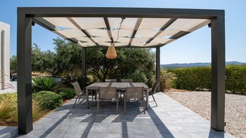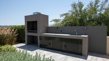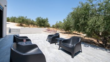 Der 7.000 m² große Olivenhain der Villa bietet nicht nur Privatsphäre, sondern auch eine tiefe Verbundenheit mit der Natur. Spazieren Sie durch diese ruhige Landschaft oder genießen Sie einfach die Schönheit von einem der vielen Sitzgelegenheiten im Freien, die rund um das Anwesen verstreut sind. Der Essbereich im Freien ist perfekt für gemeinsame Mahlzeiten, begleitet von den sanften Geräuschen der Natur.