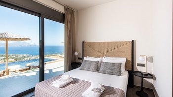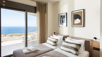 Die Villa Mila ist eine moderne und stilvolle Villa im Westen Kretas mit herrlichem Meerblick von ihrer erhöhten Hanglage aus. Denen Innenräume sind schick und modern und sorgen für eine luxuriöse und einladende Atmosphäre. Im Erdgeschoss befinden sich eine helle OFFENER GRUNDRISS Küche, ein Wohn- und Essbereich und ein zusätzlicher Wohnraum. Im Obergeschoss finden Sie zwei weitere Doppelschlafzimmer mit eigenem Bad, jedes ebenso geräumig und modern. Eines dieser Zimmer kann auch als Zweibett eingerichtet werden.