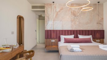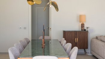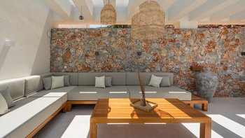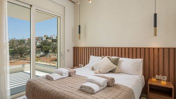 Bei der Ankunft in der Villa Rhea werden die Gäste von dem atemberaubenden architektonischen Design und dem weitläufigen Grundstück des Anwesens begeistert sein. Das Innere der Villa ist modern, minimalistisch und sorgfältig eingerichtet, mit Onyx, luxuriösen Gold-Details, Naturstein, Iroko-Dielen und maßgeschneiderten Möbeln. Es gibt einen schönen großen Wohnbereich, einen Essbereich und eine Küche sowie fünf schöne Schlafzimmer, jedes mit seinem eigenen eleganten Bad. Es gibt auch einen Kinoraum mit einem Smart-TV und einer Playstation 5.