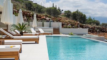 Mit zwei beheizten Pools, einem Jacuzzi, einem Indoor-Kino und einem atemberaubenden Meerblick ist die Villa Rhea für einen verwöhnten und entspannten Aufenthalt an der Küste Kretas konzipiert.