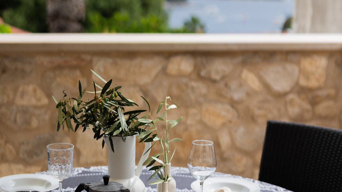 Eingebettet in die Straßen der Altstadt von Hvar und nur drei Minuten zu Fuß vom Stadtplatz entfernt, ist dieses wunderschöne Anwesen der perfekte Ort für Familien oder Freunde, die die Insel Hvar erkunden möchten. Hvar House ist eine renovierte und moderne Villa mit wunderschönen Steinfassaden, klassischen grünen Fensterläden und viel modernem Komfort. Es gibt zahlreiche Außenbereiche zum Entspannen, darunter einen charmanten Essbereich im Freien neben dem privaten, geschlossenen Pool, einen Jacuzzi auf der vorderen Terrasse und einen Obstgarten. Mit einer flexiblen Aufteilung für Familien oder größere Gruppen verfügt das Hvar House über vier Schlafzimmer in der Hauptvilla und eines in einem Nebengebäude, alle mit eigenem Bad. Im Inneren wurde das Anwesen sorgfältig zu einem hohen Standard eingerichtet und mit neutralen Farbtönen, freiliegenden Steinmauern und Holzböden dekoriert. Deren Haupthaus erstreckt sich über drei Ebenen mit zwei Schlafzimmern auf halben Stockwerken. Im Erdgeschoss öffnet sich die OFFENER GRUNDRISS Küche, das Wohn- und Esszimmer auf eine Terrasse. Deren obere Ebene beherbergt das Hauptschlafzimmer mit Super-Kingsize-Bett, Bad en suite mit Badewanne und separater Dusche und direktem Zugang zu einer großen privaten Terrasse mit einem komfortablen Sitzbereich und herrlichem Blick auf die Küste von Hvar.