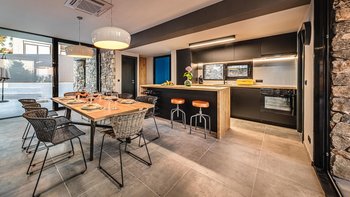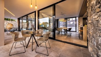 Mit herrlichem Blick auf die mediterrane Flora und die Adria ist die Villa Lumin ein modernes Anwesen mit atemberaubenden Möbeln und PRIVATER POOL. Es gibt vier geräumige Schlafzimmer, jedes mit eigenem Bad, Farbgebung und Blick auf das Meer. Im Wohnbereich lassen raumhohe Fenster viel Tageslicht herein, mit einem Flatscreen-TV und bequemen Samtmöbeln. Deren voll ausgestattete Küche ist ähnlich elegant und modern, mit einer Frühstückstheke und einem Esstisch für acht Personen. Obwohl die Villa in jeder Hinsicht modern ist, schafft es sie, dank ihrer Natursteinakzente einen Hauch der traditionellen Architektur der Region zu präsentieren.