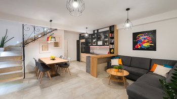 Die Villa Violet ist ein traditionelles Steingebäude mit modernen Elementen und verbindet mühelos Altes und Neuem. Der Wohn- und Essbereich ist geräumig und offen gestaltet und gleichzeitig komfortabel und gemütlich. Ein Ecksofa lädt zum Entspannen abseits der Mittagssonne ein und eine stilvolle Küche bietet einen Indoor-Essbereich. Drei charmante Schlafzimmer verfügen jeweils über ein Duschbad en suite; das Doppelhaus im Erdgeschoss hat auch direkten Zugang zur Poolterrasse.