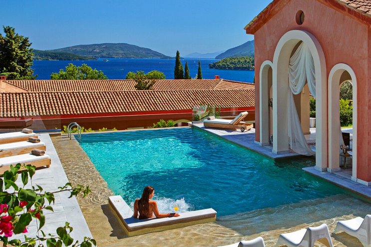 Im Aiolos in Lefkada sind atemberaubende Ausblicke auf die Bucht, eine stilvolle, moderne Einrichtung und ein wohltuender beheizter Jacuzzi perfekt aufeinander abgestimmt.