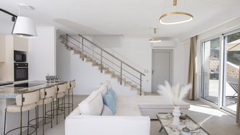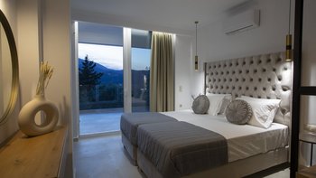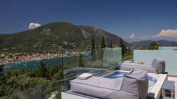 Im Aiolos in Lefkada sind atemberaubende Ausblicke auf die Bucht, eine stilvolle, moderne Einrichtung und ein wohltuender beheizter Jacuzzi perfekt aufeinander abgestimmt.