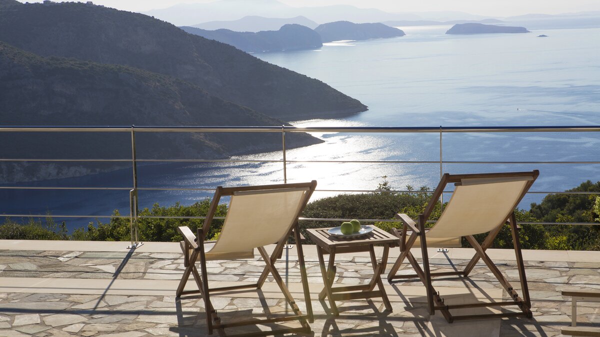 Atokos House ist elegant, faszinierend und exquisit einladend, mit herrlichem Blick auf das sonnenschimmernde Meer.