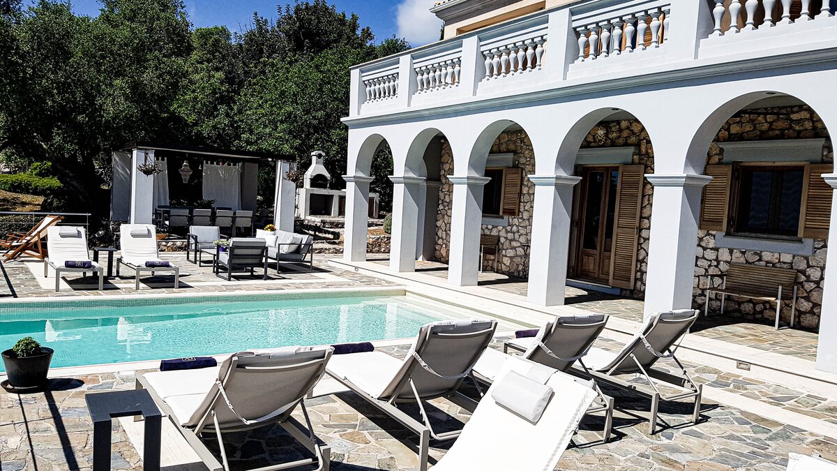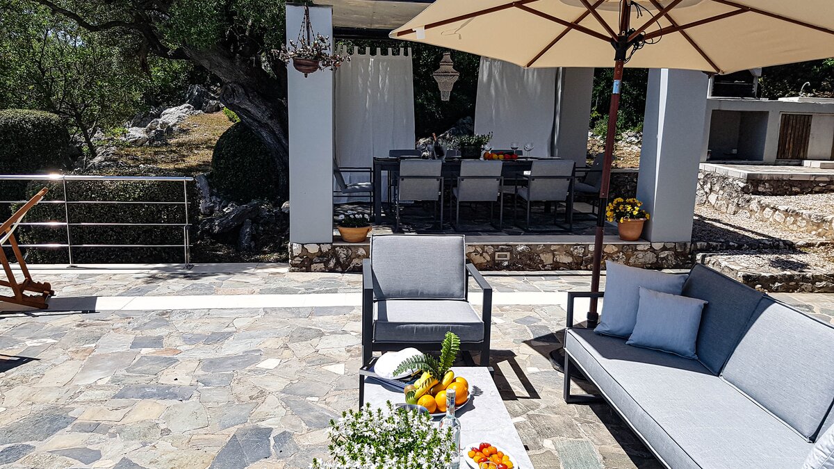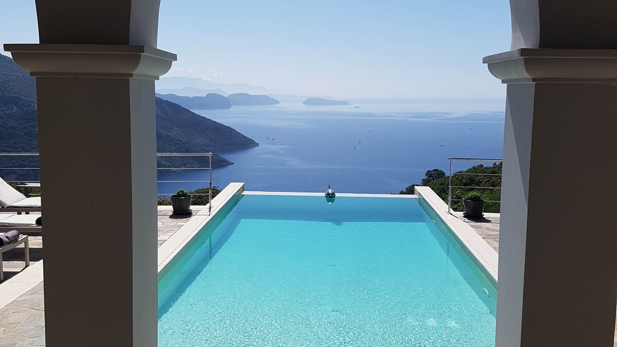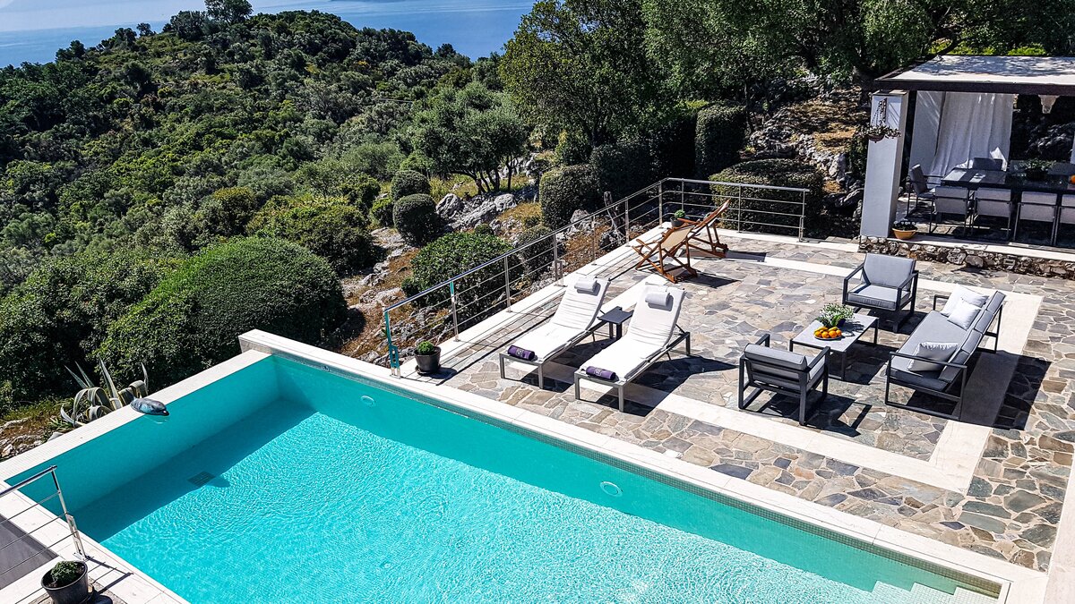 Wählen Sie einen Superlativ für die atemberaubende Aussicht vom außergewöhnlichen Pool hier ... niemand wird ihnen recht gerecht. Dieser Luxusvilla in Lefkada ist elegant, faszinierend und exquisit einladend. Dieses sehr schicke Haus mit einer faszinierenden Mischung aus Möbeln ist ein Paradox der Stile drinnen und draußen. Klassische Antiquitäten und kunstvolle moderne Möbel verbinden sich mit einem Hauch von Belle Epoque-Elegance. Eine ziemlich große Loggia mit Säulen öffnet sich zu einer herrlichen gepflasterten Poolterrasse, die einen Kontrast zum felsigen Garten am Hang bildet, der natürlich mit Lavendel, Oregano, Thymian und gelegentlich auch Zypressen bedeckt ist. Und während eine Terrasse eine mit Vorhängen versehene Pergola schmückt, genießt eine andere den Schatten der versilberten Olivenbäume. Dieses Haus teilt sich das Anwesen, etwa 40 Meter vom Haus entfernt, das stilvoll, modern und völlig getrennt ist. Zusammen vermietet, wären die beiden eine perfekte Paarung für eine große Gruppe von Familie oder Freunden. Der Atokos House liegt 4 km von Sivota entfernt, beliebt bei Seglern und ist mit Geschäften und Tavernen übersät.