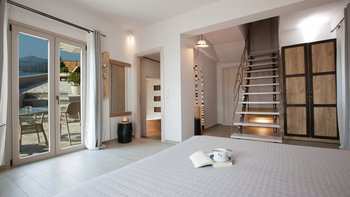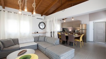 Diese hübsche Villa ist perfekt für einen Strandurlaub gelegen, mit dem idyllischen kleinen Passa-Strand nur 400 Meter von der Unterkunft und einem Restaurant nur ein wenig weiter. Kallisto liegt am Fuße eines Hügels, weniger als 2 km von Perigali entfernt und ist eine von vier Villen. Der örtliche Architekt hat eine wunderbare Mischung aus Tradition und Moderne geschaffen, die zu einer attraktiven und äußerst komfortablen Immobilie führt. Es gibt ein helles und geräumiges Wohnzimmer mit Essecke und Küche, das sich auf eine sonnige Terrasse öffnet. Auf derselben Etage befindet sich das einfach, aber atemberaubend dekorierte Hauptschlafzimmer mit eigenem Bad und Himmelbett, das durch breite Schiebetüren auf eine möblierte Terrasse führt.