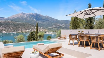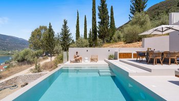 Von außen wird die Villa Lethia wahrhaftig zum Leben erweckt. Der Infinity-Pool ist mit Liegestühlen geschmückt und das azurblaue Wasser scheint mit dem Meer zu verschmelzen. Auf der Poolterrasse, die sich ideal für Mahlzeiten im Freien eignet, können die Gäste köstliche regionale Küche vor einer atemberaubenden Kulisse genießen. Für begeisterte Entdecker bietet die Umgebung zahlreiche Attraktionen: Der Strand Desimi liegt nur vier Kilometer entfernt, während das pulsierende Stadtzentrum von Nydri 9 Kilometer entfernt ist. Denen charmanten Restaurants von Geni sind nur 400 Meter zu Fuß entfernt, wo die Gäste die Neuheit der lokalen Küche genießen können. In Kombination mit den Schwesterhäusern Olea und Kontoula können größere Gruppen ein umfassendes Inselerlebnis genießen.