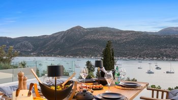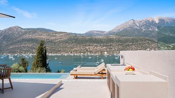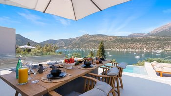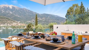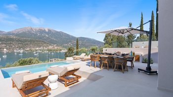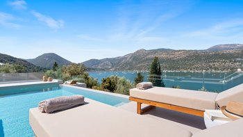 Draußen verwandelt sich die Villa Olea in ein privates Paradies. Der Infinity-Pool verschmilzt mit dem azurblauen Wasser des Meeres, während die Terrassen Platz zum Entspannen, Essen im Freien und Verjüngung bieten. Deren Umgebung bietet zahlreiche Attraktionen: Der Desimi-Strand ist nur vier Kilometer entfernt, während das pulsierende Zentrum von Nydri eine neun Kilometer lange Autofahrt entfernt ist. Denen charmanten Restaurants von Geni sind nur 400 Meter zu Fuß entfernt und bieten einen authentischen Einblick in das lokale Leben. In Kombination mit den Schwesterhäusern Lethia und Kontoula können größere Gruppen ein umfassendes Inselerlebnis genießen.
