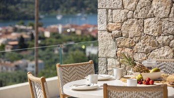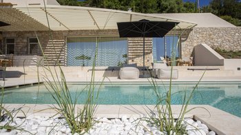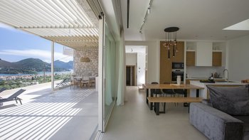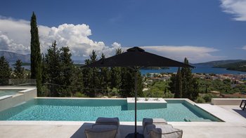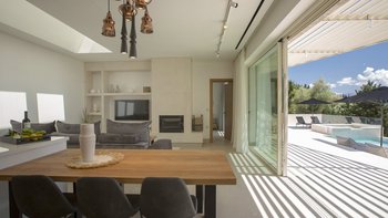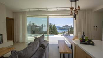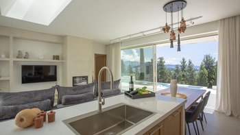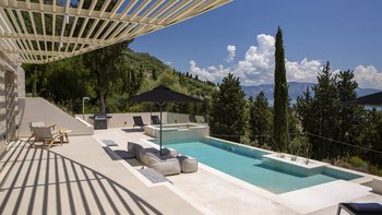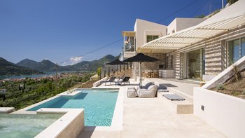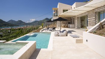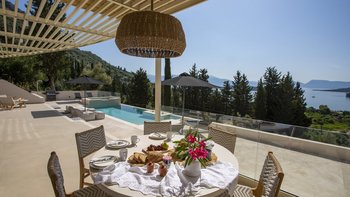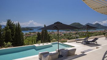 Die stilvolle und moderne Villa Athena ist ein entspannender Rückzugsort auf Lefkada, mit Panoramablick auf vorgelagerte Inseln und in der Nähe fabelhafter Restaurants.