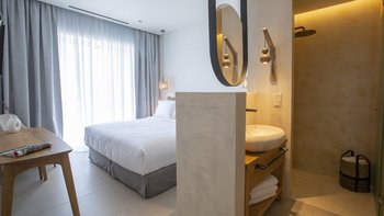 • Doppelzimmer (Super-Kingsize-Bett) mit Dusche en suite