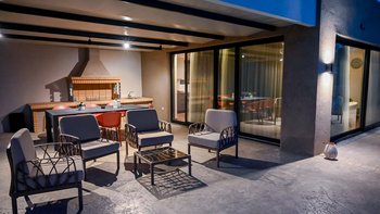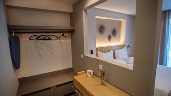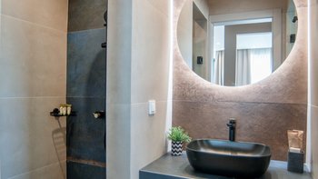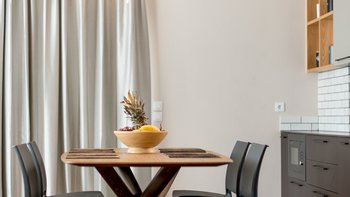 Im Inneren werden die Gäste von einem offenen Raum empfangen, der die Küche, den Ess- und den Wohnbereich nahtlos integriert. Denen sanften Grautöne schaffen eine beruhigende Atmosphäre, während die voll ausgestattete Küche zu kulinarischen Entdeckungen einlädt. Dessen Hauptschlafzimmer mit eigenem Bad verspricht eine erholsame Nachtruhe. Dessen zweite Schlafzimmer mit zwei Einzelbetten sorgt für eine komfortable Unterkunft für alle Gäste. Beiden Zimmer sind durchdacht mit offenen Schränken und Schreibtischen ausgestattet, während das Gemeinschaftsbad mit einer wunderbaren Auswahl an Pflegeprodukten bestückt ist.