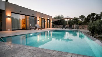 Die Villa Dahlia ist ein bezaubernder Rückzugsort, eingebettet in das natürliche Grün des Berges Skaros und bietet einen idyllischen Rückzugsort für Familien und Gruppen von Freunden. Dieser wunderschön gestaltete Villa verfügt über zwei Schlafzimmer und geräumige Innenräume. Zu den herausragenden Merkmalen gehören ein exquisiter Infinity-Pool, eine moderne Architektur, die mit der Umgebung harmoniert, und eine Fülle von natürlichem Licht, das die Innenräume durchflutet. Villa Dahlia verspricht eine perfekte Mischung aus Komfort, Stil und Naturverbundenheit.