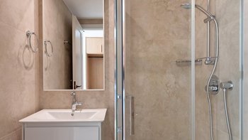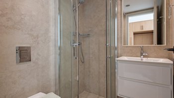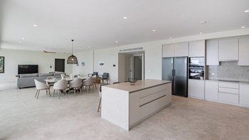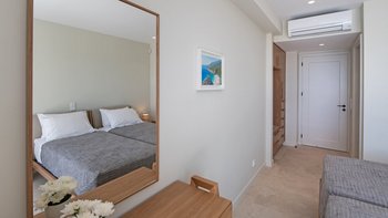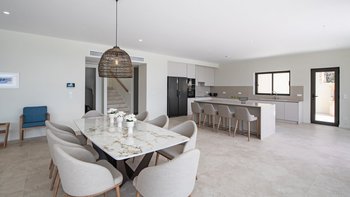 Im ersten Stock der Villa befinden sich alle sechs Schlafzimmer, die jeweils über ein eigenes Bad verfügen. Denen Zimmer sind mit maßgefertigten Möbeln aus massiver Eiche und luxuriösen Möbeln mit natürlicher Textur dekoriert, die der Villa eine wirklich unverwechselbare Note verleihen. Jedes Badezimmer verfügt über eine eigene begehbare Dusche. Der Villa hat ein sehr helles und luftiges Ambiente, mit dem offenen Grundriss Wohn- und Küchenbereich im Erdgeschoss mit einer Frühstückstheke, die sich auf die Terrasse öffnet, ein idealer Ort für ein Essen mit Aussicht zu jeder Tageszeit.