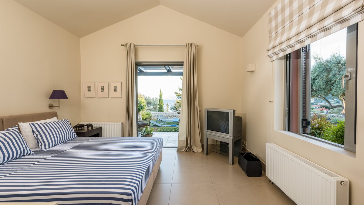 Ein hübsches rosafarbenes Haus mit herrlichem Blick über das Blau der Bucht, dies ist eine moderne Luxusvilla in Lefkada, in einer ruhigen, abgelegenen Lage, aber nahe genug, um zum Strand zu spazieren.