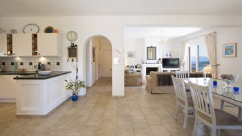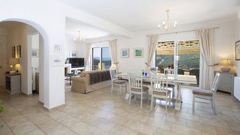 Das durchdachte Interieur der Villa maximiert den Komfort und nutzt die unglaubliche Umgebung der Villa voll aus. Deren Erdgeschoss verfügt über einen geräumigen, offenen Wohnbereich, der ein Wohnzimmer, einen Essbereich und eine Küche kombiniert, so dass es der ideale Ort ist, um Kontakte zu knüpfen und entspannte Abende zu genießen. Ein Schlafzimmer mit Doppelbett mit Bad en suite und separater Dusche befindet sich ebenfalls auf dieser Ebene, während sich im Obergeschoss zwei flexible Schlafzimmer entweder mit zwei Einzelbetten oder Doppelbetten ausgestattet werden können, die jeweils über ein eigenes Duschbad verfügen. Deren Villa ist im gesamten Gebäude voll klimatisiert, sodass Sie bei jedem Wetter im Freien Komfort genießen können.