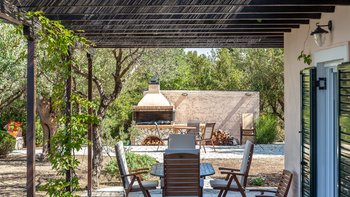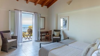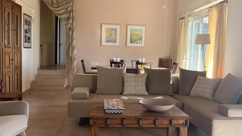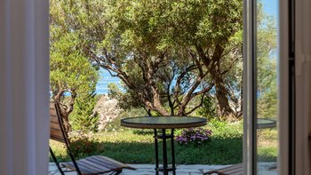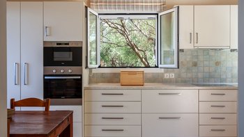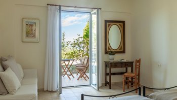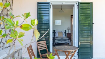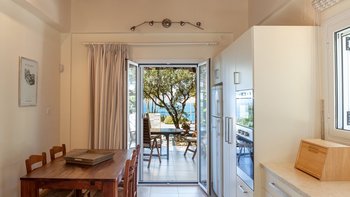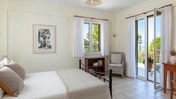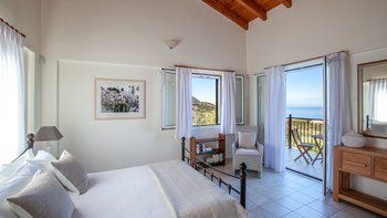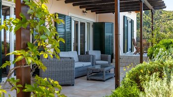 Im Inneren ist die Villa Thymari hell und einladend, mit lebendigem Interieur, das rustikale Eleganz mit modernem Komfort verbindet. Jedes der vier vollklimatisierten Schlafzimmer der Villa verfügt über weiche Bettwäsche und Zugang zur Terrasse, die den Innenkomfort nahtlos mit der ruhigen Umgebung der Villa verbinden. Der offene Wohn- und Essbereich ist in natürliches Licht getaucht, während die angrenzende Küche komplett für kulinarische Abenteuer ausgestattet ist, mit Blick auf das Meer vom Esstisch aus. An der frischen Luft bieten ein schattiger Essbereich im Freien und ein eingebauter Grill im Freien den perfekten Rahmen für lange mediterrane Abende mit lokalen Aromen.