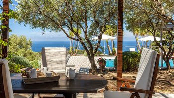 Die Villa Thymari liegt auf einem sonnigen Hügel mit weitem Blick auf das Ionische Meer und ist eine Villa mit vier Schlafzimmern in Lefkada, wo natürliche Schönheit auf mühelosen Charme trifft. Dessen Villa erstreckt sich über zwei Ebenen und bietet Komfort und Charakter, was sie zu einem einladenden Rückzugsort für Familien oder Gruppen von Freunden macht. Umgeben von Olivenbäumen und mediterraner Flora, fühlt es sich wunderbar abgeschieden und liegt nur wenige Minuten vom malerischen Dorf Agios Nikitas und seinen Sandstränden entfernt. Hier beginnt der Morgen mit einer Meeresbrise, und die Abende entfalten sich oft am Pool, am besten unter dem Sternenhimmel.
