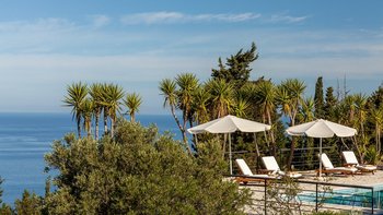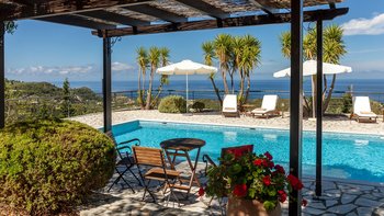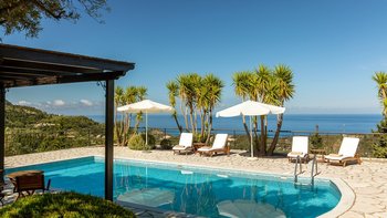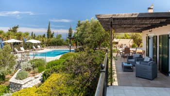 Eine bezaubernde Villa mit vier Schlafzimmern in Lefkada, Griechenland, bietet die Villa Thymari einen weiten Blick über das Ionische Meer von einer idyllischen Hügellage, in der Nähe der örtlichen Sandstrände.