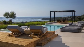 A stylish hillside retreat with panoramic Ionian Sea views, Villa Vina combines modern design, privacy and a private pool; perfectly placed for exploring Lefkada and mainland Greece.