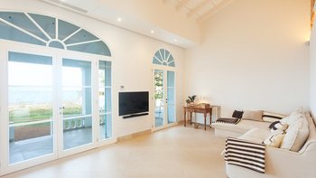 Die Villa ist in natürliches Licht getaucht, dank der großen Fenster, die jede Ecke beleuchten und eine helle und einladende Atmosphäre schaffen. Eines der herausragenden Merkmale ist die vordere Terrasse mit spektakulärem Meerblick.