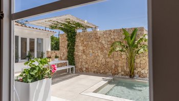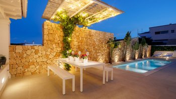 Der Innenhof verfügt über einen abgeschiedenen Privater Pool, der als Ihre persönliche Oase zum Entspannen und Sonnenbaden in absoluter Privatsphäre dient. Zusätzlich gibt es einen Esstisch im Freien, an dem Sie Ihren Mahlzeiten im Freien genießen können. Dieser Einrichtung schafft einen idealen Rahmen, um wertvolle Momente mit Familie und Freunden zu teilen.