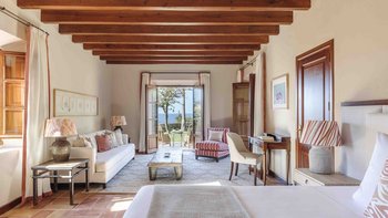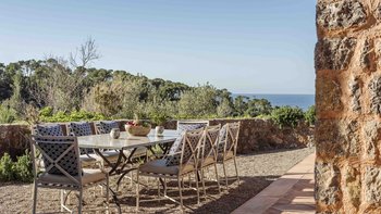 Auf einem Hügel oberhalb der atemberaubenden Nordwestküste der Insel gelegen, sonnt sich Sa Terra in der Schönheit des exklusiven Anwesens Son Bunyola, einem renommierten privaten Rückzugsort, der 3 km von der Küstenstraße nach Valldemossa entfernt liegt. Denen Gäste können das 1.500 Hektar große Grundstück frei erkunden, und es gibt einen Küstenweg nach Banyalbufar und einen Kieselstrand unterhalb des Hauses, der 20 Minuten zu Fuß entfernt ist. Dessen im traditionellen mallorquinischen Stil erbaute Villa wurde kürzlich auf höchstem Niveau renoviert und bietet sehr modernen Komfort, jedes der Schlafzimmer mit eigenem Bad und eigener Terrasse, alle Wohnbereiche mit individueller Klimaanlage.