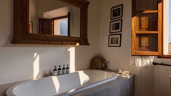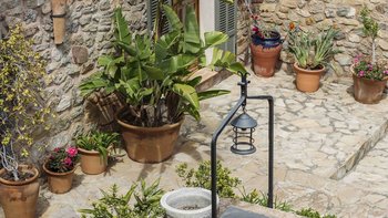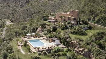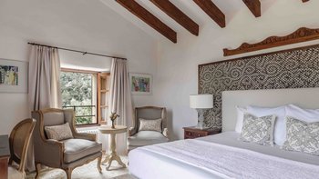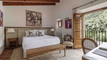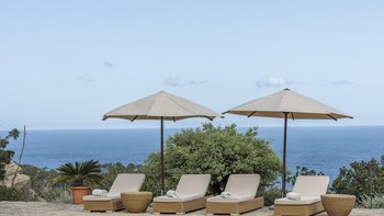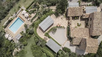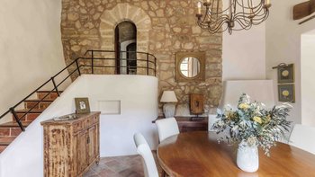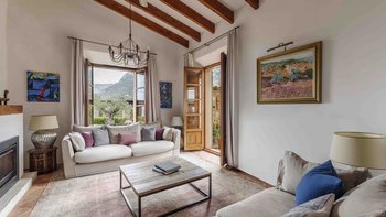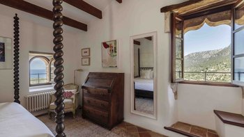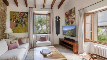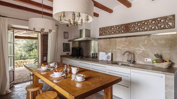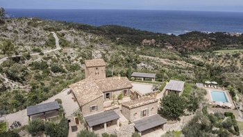 Im Erdgeschoss gibt es eine moderne Küche mit rustikalen Elementen und ein geräumiges, aber gemütliches Wohn-/Esszimmer mit Stufen zu einem separaten Fernsehbereich. Ein zweites Wohnzimmer befindet sich im Turm. Der geschützte zentrale Innenhof mit Außenküche und Grill und der weiche Sitzbereich mit Panoramablick auf das Meer bieten ausgezeichnete Plätze zum Entspannen, während die herrliche Terrasse ideal für ein Abendessen im Freien ist. Von der Villa führt eine Treppe hinunter zum schönen privaten beheizten Pool, der von blumengeschmückten Gärten umgeben ist. Auf dem Anwesen befindet sich ein Tennisplatz, den Son Balagueret mit den Schwestervillen Sa Punta und Sa Terra teilt.