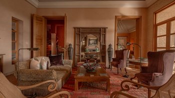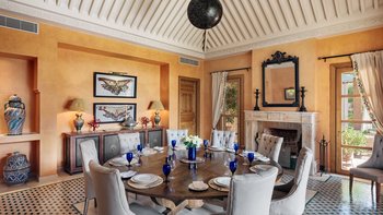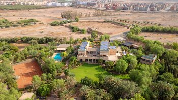 Diese prächtige große Villa befindet sich in bester ländlicher Lage in der Nähe des berühmten Golfplatzes Assoufid, in sehr privater Lage, aber nur 15 km von den Restaurants, Boutiquen und historischen Gärten des exotischen Marrakesch entfernt. Jedes der geräumigen Zimmer dieser beeindruckenden Villa mit hohen Decken ist wunderschön im klassischen zeitgenössischen Stil mit marokkanischen Akzenten eingerichtet. Dessen herrliche Wohnzimmer führt zu einem Esszimmer mit Kamin und die meisten Zimmer im Erdgeschoss öffnen sich zu den großen Terrassen mit reichlich weichen Sitz- und Essbereichen. Fünf der sieben geräumigen Schlafzimmer befinden sich im Haupthaus, eines davon im Erdgeschoss, jedes Schlafzimmer mit Zugang zu Terrassen. Im Obergeschoss befinden sich die vier sehr geräumigen Schlafzimmer in jeder Ecke der Villa und zwei Schlafzimmer mit Zugang zu Terrassen mit spektakulärem Blick auf das Atlasgebirge.