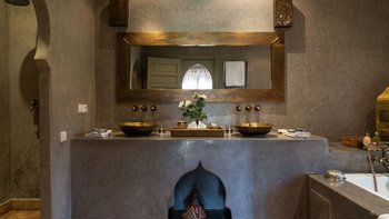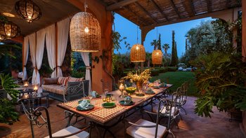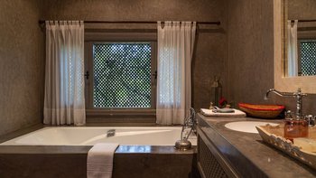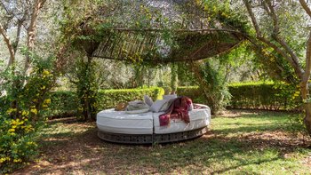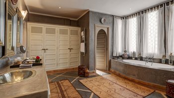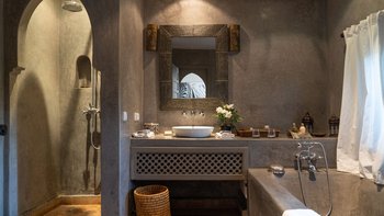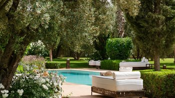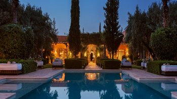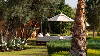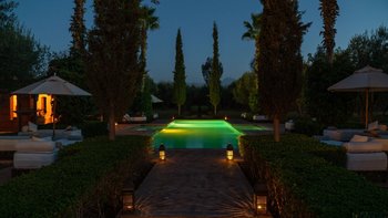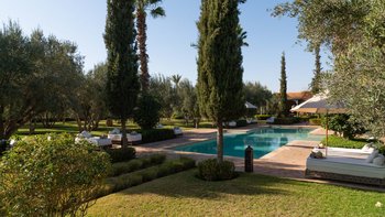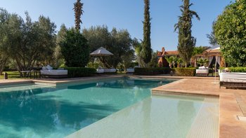 Dar Ammura ist eine raffinierte, elegante Villa mit herrlichem Blick auf das Atlasgebirge von den weitläufigen Rasengärten. Ein palmengesäumter Weg führt vom Haus zu einem fantastischen Pool, der mit individuellen Liegen und Sonnenschirmen ausgestattet ist, um sich inmitten der ruhigen Gärten vollkommen zu entspannen. Denen Hängematten am Pool sind bereit für einen Nachmittag zum Schlummern. Aktivere Sportler können eine Reihe von Aktivitäten wie Volleyball, Boule, Badminton und Tischtennis ausüben, und es gibt einen Sandflächen-Tennisplatz, der mit anderen Villen des Anwesens geteilt wird.