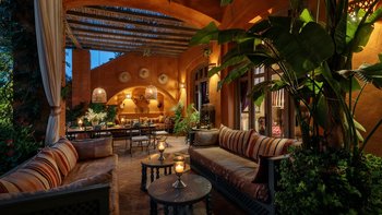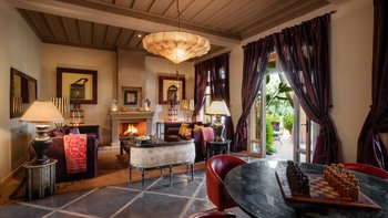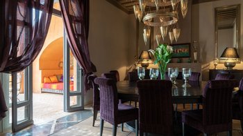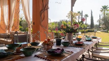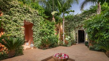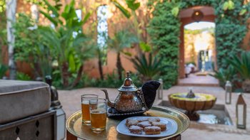 Bei der Ankunft wird den Gästen marokkanischer Tee serviert. Der Koch der Villa bereitet mit Hilfe eines Assistenten alle Mahlzeiten für die Gäste zu. Des Frühstück wird auf der Hauptterrasse mit Getränken/Sonnenuntergang auf dem Dach mit Hors d’oeuvres eingenommen. Dessen Abendessen kann auch auf der Dachterrasse oder am Pool unter den mit Kerzen beleuchteten Olivenbäumen eingenommen werden. Marokkanischer Tee wird jeden Tag um 11.00 Uhr am Pool serviert und englischer Tee und vom Butler jeden Tag mit hausgemachten Kuchen serviert. Zu den weiteren Dienstleistungen gehören eine tägliche Haushaltung und Aromatherapiemassagen in der Villa und Yoga sind auf Anfrage und gegen Aufpreis erhältlich. Deren Villa wird jeden Tag zubereitet und jeden Abend gedreht und abgelehnt. Für besondere Veranstaltungen wie Kamele, Feuerspeisen, Schlangenbeschwörer und Daqqa-Musiker können gegen Aufpreis Unterhaltungsprogramme organisiert werden.